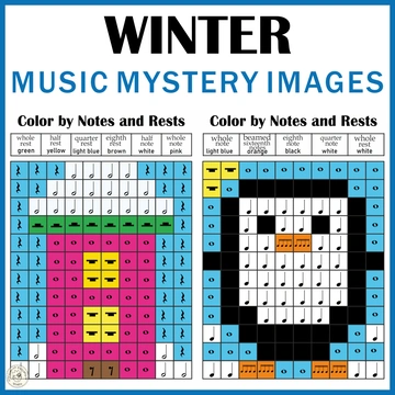 These spring-themed music color-by-note mystery pictures (mystery grids, pixel art ) will turn your winter music lessons with these engaging and festive activities! Your elementary music students will improve their rhythm-reading skills. Students uncover secret spring-themed images by accurately identifying and coloring picture parts by musical notes. Ideal for music centers, winter-themed lessons, or fun classroom activities during the winter season.